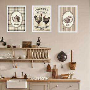 Kit 3 quadros cozinha country kitchen 24x18cm Moldura: madeira branca Informações do produto tire todas as suas dúvidas no descritivo abaixo: decoração para quarto, sala, cozinha, escritório, área gourmet e muito mais. Chega de paredes vazias medidas - cada peça tem 24x18cm a5 . Material do papel - papel fotográfico brilhante de altíssima resolução acabamento - todos os quadros são acompanhados de uma película de acetato para proteção da imagem. - os quadros são embalados de forma segura com plástico bolha com camada dupla de acordo com o tamanho dos quadros. Garantia - garantia de 3 meses. Meu quadro chegou. Como posso fixá-lo Você precisa apenas de um martelo e um prego, pois os quadros já vão acompanhados de penduradores. Esta é a forma mais indicada. Caso prefira, você pode utilizar uma fita dupla face neste caso, sugerimos de alta qualidade para evitar que descole e seu quadro caia . Como posso limpar meu quadro A limpeza é feita como um móvel comum da sua casa. Apenas um pano seco ou espanador são suficientes para tal