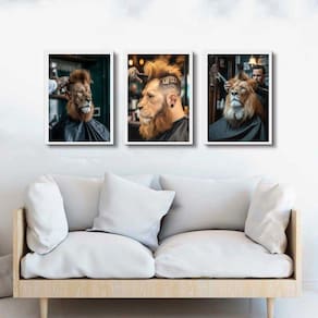 Kit 3 quadros decorativos barbearia - leão 33x24cm Cor: moldura preta Informações do produto tire todas as suas dúvidas no descritivo abaixo: decoração para quarto, sala, cozinha, escritório, área gourmet e muito mais. Chega de paredes vazias medidas - cada peça tem 33x24cm a4 . Material do papel - papel fotográfico brilhante de altíssima resolução acabamento - todos os quadros são acompanhados de uma película de acetato para proteção da imagem. - os quadros são embalados de forma segura com plástico bolha com camada dupla de acordo com o tamanho dos quadros. Garantia - garantia de 3 meses. Meu quadro chegou. Como posso fixá-lo Você precisa apenas de um martelo e um prego, pois os quadros já vão acompanhados de penduradores. Esta é a forma mais indicada. Caso prefira, você pode utilizar uma fita dupla face neste caso, sugerimos de alta qualidade para evitar que descole e seu quadro caia . Como posso limpar meu quadro A limpeza é feita como um móvel comum da sua casa. Apenas um pano seco ou espanador são suficientes para tal