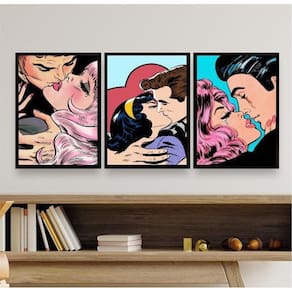 Garanta já o seu Kit 3 Quadros Decorativos Beijo Pop Art Casais 45X34Cm Vidro e deixe sua casa ainda mais bonita e charmosa. Não perca tempo e transforme sua casa com esses lindos quadros decorativos. Ean: 7893598965218