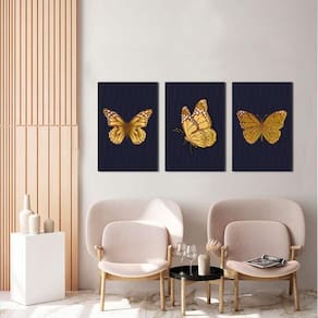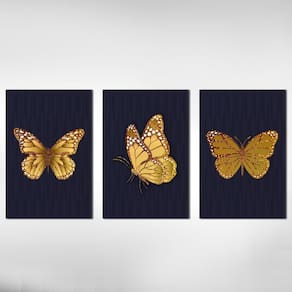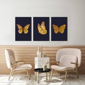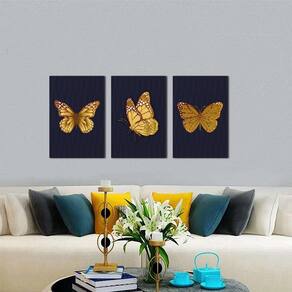 Kit 3 Quadros Decorativos Borboleta Amarela
