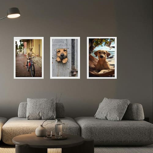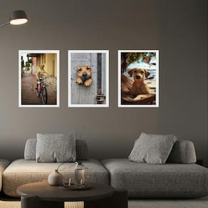 Kit 3 quadros decorativos cachorro caramelo 33x24cm - com vidro Cor: moldura branca Informações do produto tire todas as suas dúvidas no descritivo abaixo: decoração para quarto, sala, cozinha, escritório, área gourmet e muito mais. Chega de paredes vazias medidas - cada peça tem 33x24cm a4 . Material do papel - papel fotográfico brilhante de altíssima resolução acabamento - todos os quadros são acompanhados de vidro para proteção da imagem. - moldura em madeira maciça na cor preta ou branca conforme produto escolhido e pendurador . - os quadros são embalados de forma segura com plástico bolha com camada dupla de acordo com o tamanho dos quadros. - de 3 meses. Meu quadro chegou. Como posso fixá-lo Você precisa apenas de um martelo e um prego, pois os quadros já vão acompanhados de penduradores. Esta é a forma mais indicada. Como posso limpar meu quadro A limpeza é feita como um móvel comum da sua casa. Apenas um pano seco ou espanador são suficientes para tal Marca: Não Informado