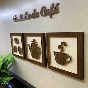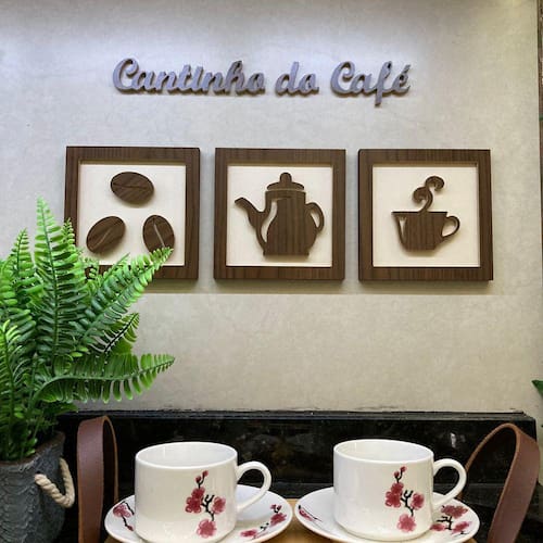Quantidade: 3 unidades de quadros + frase Cantinho do Café.