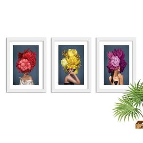 Kit 3 Quadros Decorativos Com Moldura Branca Mulher Flores Quadros decorativos fabricados com moldura de madeira de reflorestamento com acabamento laqueado, impressão a laser em papel couché 300g, fundo em madeira. As paredes ganham cor e vida com quadros e painéis decorativos. Escolha os modelos que faltam para deixar sua decoração ainda mais bonita. Na sala, no quarto ou em outros cômodos, as peças coloridas ou em preto e branco garantem mais estilo.