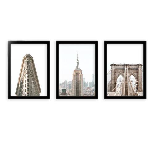 Kit 3 Quadros Decorativos Com Moldura New York Quadros decorativos fabricados com moldura de madeira de reflorestamento com acabamento laqueado, impressão a laser em papel couché 300g, fundo em madeira. As paredes ganham cor e vida com quadros e painéis decorativos. Escolha os modelos que faltam para deixar sua decoração ainda mais bonita. Na sala, no quarto ou em outros cômodos, as peças coloridas ou em preto e branco garantem mais estilo.
