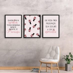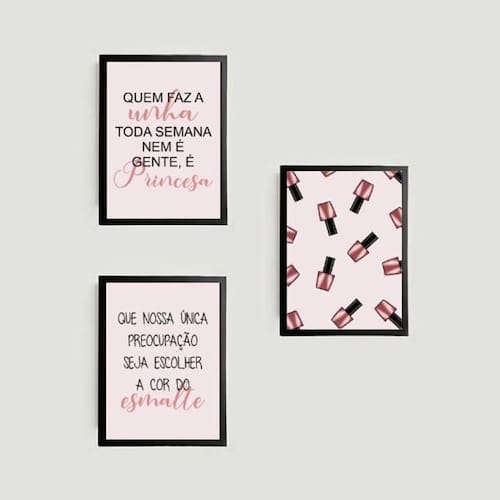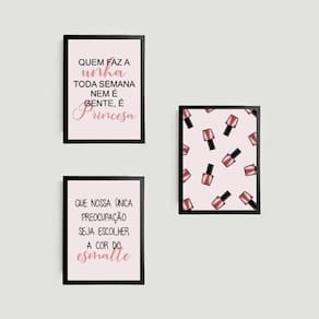 Kit 3 Quadros Decorativos Esmalteria 45X34Cm Moldura Preta