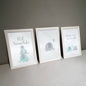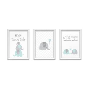 Kit 3 Quadros Decorativos Familia Elefantes 24x34cm