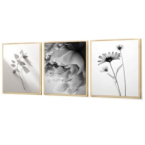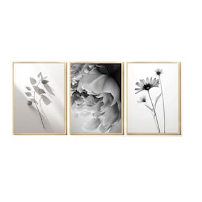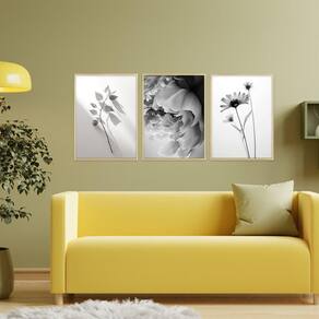 Kit 3 Quadros Decorativos Folhagens Girassol Preto e Branco
