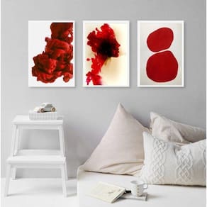 Kit 3 quadros decorativos formas abstratas vermelhos 45x34cm - com vidro Moldura: madeira branca Informações do produto tire todas as suas dúvidas no descritivo abaixo: decoração para quarto, sala, cozinha, escritório, área gourmet e muito mais. Chega de paredes vazias medidas - cada peça tem 45x34cm a3 . Material do papel - papel fotográfico brilhante de altíssima resolução acabamento - todos os quadros são acompanhados de vidro para proteção da imagem. - moldura em madeira maciça na cor preta ou branca conforme produto escolhido e pendurador . - os quadros são embalados de forma segura com plástico bolha com camada dupla de acordo com o tamanho dos quadros. Garantia - garantia de 3 meses. Meu quadro chegou. Como posso fixá-lo Você precisa apenas de um martelo e um prego, pois os quadros já vão acompanhados de penduradores. Esta é a forma mais indicada. Como posso limpar meu quadro A limpeza é feita como um móvel comum da sua casa. Apenas um pano seco ou espanador são suficientes para tal Ean: 7891426052727
