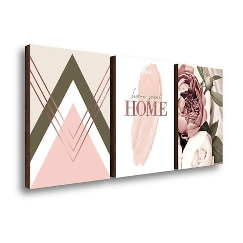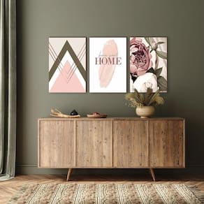 Kit 3 Quadros Decorativos Home Peônia Rose 40x60cm