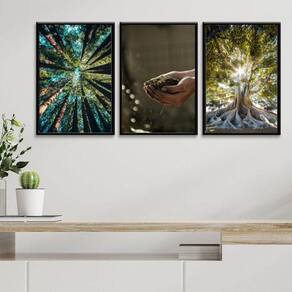 Kit 3 quadros decorativos mãe natureza 24x18cm - com vidro Moldura: madeira branca Informações do produto tire todas as suas dúvidas no descritivo abaixo: decoração para quarto, sala, cozinha, escritório, área gourmet e muito mais. Chega de paredes vazias medidas - cada peça tem 24x18cm a5 . Material do papel - papel fotográfico brilhante de altíssima resolução acabamento - todos os quadros são acompanhados de vidro para proteção da imagem. - moldura em madeira maciça na cor preta ou branca conforme produto escolhido e pendurador . - os quadros são embalados de forma segura com plástico bolha com camada dupla de acordo com o tamanho dos quadros. Garantia - garantia de 3 meses. Meu quadro chegou. Como posso fixá-lo Você precisa apenas de um martelo e um prego, pois os quadros já vão acompanhados de penduradores. Esta é a forma mais indicada. Como posso limpar meu quadro A limpeza é feita como um móvel comum da sua casa. Apenas um pano seco ou espanador são suficientes para tal