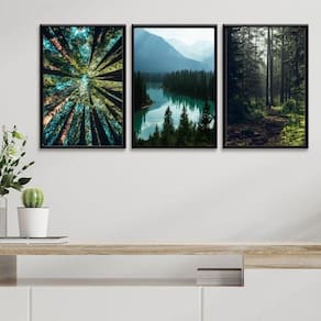 Kit 3 quadros decorativos natureza- florestas 33x24cm Moldura: madeira preta Informações do produto tire todas as suas dúvidas no descritivo abaixo: decoração para quarto, sala, cozinha, escritório, área gourmet e muito mais. Chega de paredes vazias medidas - cada peça tem 33x24cm a4 . Material do papel - papel fotográfico brilhante de altíssima resolução acabamento - todos os quadros são acompanhados de uma película de acetato para proteção da imagem. - os quadros são embalados de forma segura com plástico bolha com camada dupla de acordo com o tamanho dos quadros. Garantia - garantia de 3 meses. Meu quadro chegou. Como posso fixá-lo Você precisa apenas de um martelo e um prego, pois os quadros já vão acompanhados de penduradores. Esta é a forma mais indicada. Caso prefira, você pode utilizar uma fita dupla face neste caso, sugerimos de alta qualidade para evitar que descole e seu quadro caia . Como posso limpar meu quadro A limpeza é feita como um móvel comum da sua casa. Apenas um pano seco ou espanador são suficientes para tal