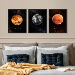 Kit 3 Quadros Decorativos Planetas 45X34Cm