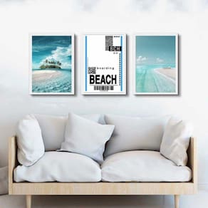 Kit 3 quadros decorativos praia - passagem 24x18cm Cor: moldura branca Informações do produto tire todas as suas dúvidas no descritivo abaixo: decoração para quarto, sala, cozinha, escritório, área gourmet e muito mais. Chega de paredes vazias medidas - cada peça tem 24x18cm a5 . Material do papel - papel fotográfico brilhante de altíssima resolução acabamento - todos os quadros são acompanhados de uma película de acetato para proteção da imagem. - os quadros são embalados de forma segura com plástico bolha com camada dupla de acordo com o tamanho dos quadros. Garantia - garantia de 3 meses. Meu quadro chegou. Como posso fixá-lo Você precisa apenas de um martelo e um prego, pois os quadros já vão acompanhados de penduradores. Esta é a forma mais indicada. Caso prefira, você pode utilizar uma fita dupla face neste caso, sugerimos de alta qualidade para evitar que descole e seu quadro caia . Como posso limpar meu quadro A limpeza é feita como um móvel comum da sua casa. Apenas um pano seco ou espanador são suficientes para tal Ean: 7891234534767