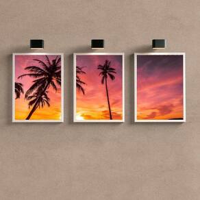 Kit 3 Quadros Decorativos Praia Por Do Sol 33X24Cm