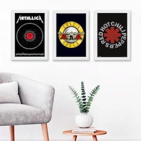 Renove a decoração do seu quarto, sala, cozinha, escritório, área gourmet e muito mais com o Kit 3 Quadros Decorativos Bandas De Rock 33X24Cm. Com esse conjunto de quadros, suas paredes vazias ganharão vida e personalidade.