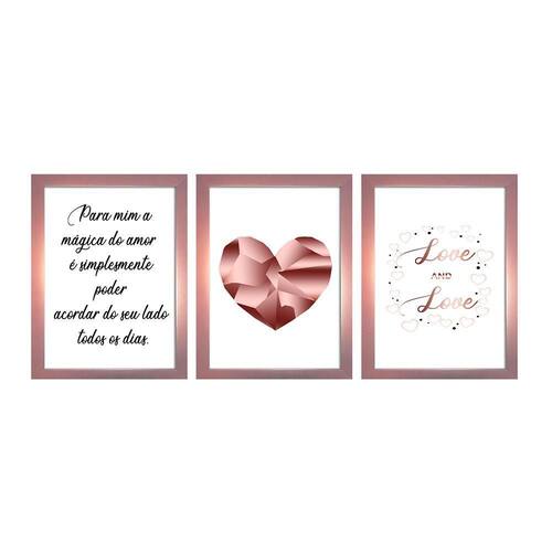 Kit 3 Quadros Decorativos Rose Para Sala Quarto Casal Dimensão do produto Montado 43x105 Características: Quadro Com Moldura laqueada lisa 2cm na cor rosa Esse KIT contém 3 unidades cada uma delas com 33x43 cm cada Acompanha pendurador - sem necessidade de cola.