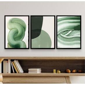 Kit 3 quadros decorativos sala abstratos verdes claro 24x18cm