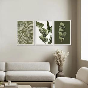 O Kit 3 Quadros Decorativos Verde Natureza Folhagens é composto por três quadros de 43x63cm cada um, perfeito para adicionar elegância e estilo à decoração do ambiente. Com uma harmonia de formas, imagens e cores, esse kit traz uma composição versátil para combinar com diferentes estilos de decoração.