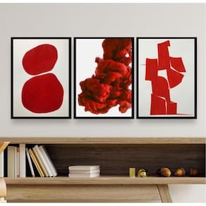 Kit 3 quadros decorativos vermelhos- arte moderna 33x24cm - com vidro Moldura: madeira preta Informações do produto tire todas as suas dúvidas no descritivo abaixo: decoração para quarto, sala, cozinha, escritório, área gourmet e muito mais. Chega de paredes vazias medidas - cada peça tem 33x24cm a4 . Material do papel - papel fotográfico brilhante de altíssima resolução acabamento - todos os quadros são acompanhados de vidro para proteção da imagem. - moldura em madeira maciça na cor preta ou branca conforme produto escolhido e pendurador . - os quadros são embalados de forma segura com plástico bolha com camada dupla de acordo com o tamanho dos quadros. Garantia - garantia de 3 meses. Meu quadro chegou. Como posso fixá-lo Você precisa apenas de um martelo e um prego, pois os quadros já vão acompanhados de penduradores. Esta é a forma mais indicada. Como posso limpar meu quadro A limpeza é feita como um móvel comum da sua casa. Apenas um pano seco ou espanador são suficientes para tal Ean: 7895296827256