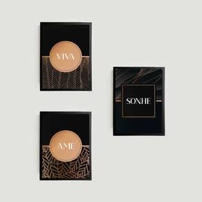 Kit 3 Quadros Decorativos Viva, Sonhe, Ame - Rosê com Preto - Tamanho: A4 (20 x 30) / Acabamento: Película de acetato / Moldura: Madeira preta