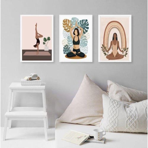 Kit 3 quadros decorativos yoga e plantas 45x34cm Moldura: madeira branca Informações do produto tire todas as suas dúvidas no descritivo abaixo: decoração para quarto, sala, cozinha, escritório, área gourmet e muito mais. Chega de paredes vazias. Medidas - cada peça tem 45x34cm a3 . Material do papel - papel fotográfico brilhante de altíssima resolução acabamento - todos os quadros são acompanhados de uma película de acetato para proteção da imagem. - os quadros são embalados de forma segura com plástico bolha com camada dupla de acordo com o tamanho dos quadros. Garantia - garantia de 3 meses. Meu quadro chegou. Como posso fixá-lo Você precisa apenas de um martelo e um prego, pois os quadros já vão acompanhados de penduradores. Esta é a forma mais indicada. Caso prefira, você pode utilizar uma fita dupla face neste caso, sugerimos de alta qualidade para evitar que descole e seu quadro caia . Como posso limpar meu quadro A limpeza é feita como um móvel comum da sua casa. Apenas um pano seco ou espanador são suficientes para tal Ean: 7897465309372