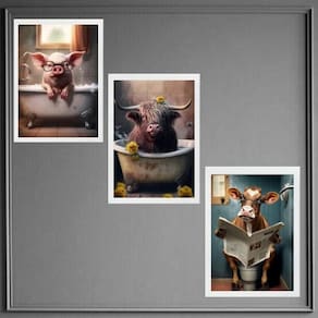 Kit 3 quadros divertidos banheiro fazenda 45x34cm - com vidro Moldura: madeira preta Informações do produto tire todas as suas dúvidas no descritivo abaixo: decoração para quarto, sala, cozinha, escritório, área gourmet e muito mais. Chega de paredes vazias medidas - cada peça tem 45x34cm a3 . Material do papel - papel fotográfico brilhante de altíssima resolução acabamento - todos os quadros são acompanhados de vidro para proteção da imagem. - moldura em madeira maciça na cor preta ou branca conforme produto escolhido e pendurador . - os quadros são embalados de forma segura com plástico bolha com camada dupla de acordo com o tamanho dos quadros. Garantia - garantia de 3 meses. Meu quadro chegou. Como posso fixá-lo Você precisa apenas de um martelo e um prego, pois os quadros já vão acompanhados de penduradores. Esta é a forma mais indicada. Como posso limpar meu quadro A limpeza é feita como um móvel comum da sua casa. Apenas um pano seco ou espanador são suficientes para tal