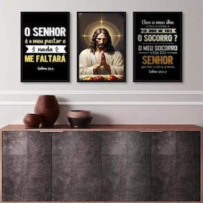 Kit 3 quadros evangélicos para cozinha- o senhor é meu pastor 24x18cm Moldura: madeira branca Informações do produto tire todas as suas dúvidas no descritivo abaixo: decoração para quarto, sala, cozinha, escritório, área gourmet e muito mais. Chega de paredes vazias medidas - cada peça tem 24x18cm a5 . Material do papel - papel fotográfico brilhante de altíssima resolução acabamento - todos os quadros são acompanhados de uma película de acetato para proteção da imagem. - os quadros são embalados de forma segura com plástico bolha com camada dupla de acordo com o tamanho dos quadros. Garantia - garantia de 3 meses. Meu quadro chegou. Como posso fixá-lo Você precisa apenas de um martelo e um prego, pois os quadros já vão acompanhados de penduradores. Esta é a forma mais indicada. Caso prefira, você pode utilizar uma fita dupla face neste caso, sugerimos de alta qualidade para evitar que descole e seu quadro caia . Como posso limpar meu quadro A limpeza é feita como um móvel comum da sua casa. Apenas um pano seco ou espanador são suficientes para tal Ean: 7895159903417