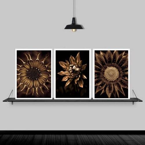 Kit 3 quadros flores girassóis bronze 45x34cm Moldura: madeira branca Informações do produto Decoração para quarto, sala, cozinha, escritório, área gourmet e muito mais. Chega de paredes vazias. Medidas - cada peça tem 45x34cm a3 . Material do papel - papel fotográfico brilhante de altíssima resolução Acabamento - todos os quadros são acompanhados de uma película de acetato para proteção da imagem. - Os quadros são embalados de forma segura com plástico bolha com camada dupla de acordo com o tamanho dos quadros. - de 3 meses. Meu quadro chegou. Como posso fixá-lo Você precisa apenas de um martelo e um prego, pois os quadros já vão acompanhados de penduradores. Esta é a forma mais indicada. Caso prefira, você pode utilizar uma fita dupla face neste caso, sugerimos de alta qualidade para evitar que descole e seu quadro caia . Como posso limpar meu quadro A limpeza é feita como um móvel comum da sua casa. Apenas um pano seco ou espanador são suficientes para tal