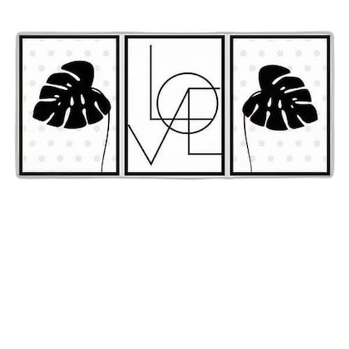 Kit 3 quadros folhas pretas love 24x18cm - com vidro