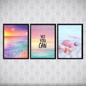 Kit 3 quadros frase praia motivacional 45x34cm Moldura: madeira preta Informações do produto tire todas as suas dúvidas no descritivo abaixo: decoração para quarto, sala, cozinha, escritório, área gourmet e muito mais. Chega de paredes vazias. Medidas - cada peça tem 45x34cm a3 . Material do papel - papel fotográfico brilhante de altíssima resolução acabamento - todos os quadros são acompanhados de uma película de acetato para proteção da imagem. - os quadros são embalados de forma segura com plástico bolha com camada dupla de acordo com o tamanho dos quadros. - de 3 meses. Meu quadro chegou. Como posso fixá-lo Você precisa apenas de um martelo e um prego, pois os quadros já vão acompanhados de penduradores. Esta é a forma mais indicada. Caso prefira, você pode utilizar uma fita dupla face neste caso, sugerimos de alta qualidade para evitar que descole e seu quadro caia . Como posso limpar meu quadro A limpeza é feita como um móvel comum da sua casa. Apenas um pano seco ou espanador são suficientes para tal