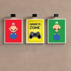 Garanta agora mesmo o Kit 3 Quadros Para Quarto Gamer Zone Coloridos 45X34Cm e transforme o seu ambiente em um verdadeiro paraíso para os amantes de games Ean: 7896450715334