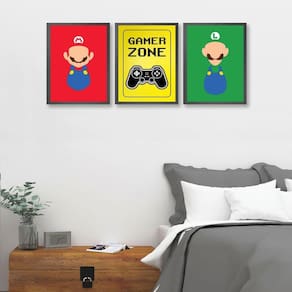 O Kit 3 Quadros Para Quarto Gamer Zone Coloridos 33X24Cm é perfeito para decorar o ambiente dos apaixonados por jogos. Com molduras em madeira branca, esses quadros vão deixar as paredes do seu quarto, sala, cozinha, escritório, área gourmet e muito mais cheias de estilo.