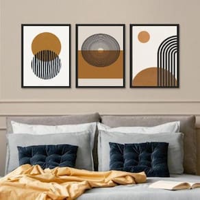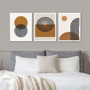 Kit 3 quadros geométricos quarto marrom 24x18cm