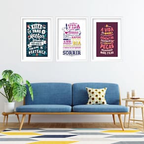 Kit 3 quadros grandes a vida ... 60x48cm Cor: moldura preta Informações do produto tire todas as suas dúvidas no descritivo abaixo: decoração para quarto, sala, cozinha, escritório, área gourmet e muito mais. Chega de paredes vazias medidas - cada peça tem 60x48cm . Material do papel - papel fotográfico brilhante de altíssima resolução acabamento - todos os quadros são acompanhados de vidro para proteção da imagem. - moldura em madeira maciça na cor preta ou branca conforme produto escolhido e pendurador. - paspatur branco com 7cm de largura - os quadros são embalados de forma segura com plástico bolha com camada dupla de acordo com o tamanho dos quadros. - de 3 meses. Meu quadro chegou. Como posso fixá-lo Você precisa apenas de um martelo e um prego, pois os quadros já vão acompanhados de penduradores. Esta é a forma mais indicada. Como posso limpar meu quadro A limpeza é feita como um móvel comum da sua casa. Apenas um pano seco ou espanador são suficientes para tal