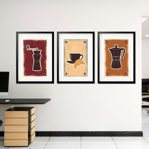 Kit 3 quadros grandes café vintage 60x48cm Cor: moldura branca Informações do produto tire todas as suas dúvidas no descritivo abaixo: decoração para quarto, sala, cozinha, escritório, área gourmet e muito mais. Chega de paredes vazias medidas - cada peça tem 60x48cm . Material do papel - papel fotográfico brilhante de altíssima resolução acabamento - todos os quadros são acompanhados de vidro para proteção da imagem. - moldura em madeira maciça na cor preta ou branca conforme produto escolhido e pendurador. - paspatur branco com 7cm de largura - os quadros são embalados de forma segura com plástico bolha com camada dupla de acordo com o tamanho dos quadros. - de 3 meses. Meu quadro chegou. Como posso fixá-lo Você precisa apenas de um martelo e um prego, pois os quadros já vão acompanhados de penduradores. Esta é a forma mais indicada. Como posso limpar meu quadro A limpeza é feita como um móvel comum da sua casa. Apenas um pano seco ou espanador são suficientes para tal Ean: 7908991742417