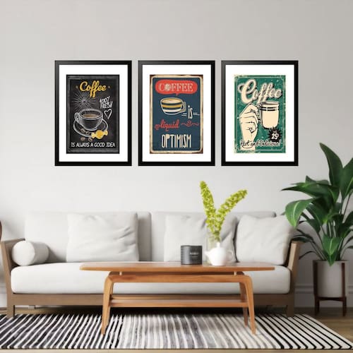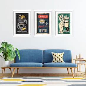 Kit 3 Quadros Grandes Hot Coffee Vintage 60x48cm - Cor: Moldura Branca