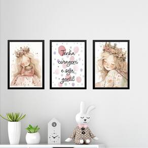 Kit 3 quadros infantis princesa - tenha coragem seja gentil 24x18cm - com vidro Cor: moldura branca Informações do produto tire todas as suas dúvidas no descritivo abaixo: decoração para quarto, sala, cozinha, escritório, área gourmet e muito mais. Chega de paredes vazias medidas - cada peça tem 24x18cm a5 . Material do papel - papel fotográfico brilhante de altíssima resolução acabamento - todos os quadros são acompanhados de vidro para proteção da imagem. - moldura em madeira maciça na cor preta ou branca conforme produto escolhido e pendurador . - os quadros são embalados de forma segura com plástico bolha com camada dupla de acordo com o tamanho dos quadros. - de 3 meses. Meu quadro chegou. Como posso fixá-lo Você precisa apenas de um martelo e um prego, pois os quadros já vão acompanhados de penduradores. Esta é a forma mais indicada. Como posso limpar meu quadro A limpeza é feita como um móvel comum da sua casa. Apenas um pano seco ou espanador são suficientes para tal Marca: Não Informado Ean: 7908991739394