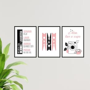 Kit 3 quadros lavanderia alexa lave a roupa 24x18cm