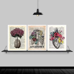 Kit 3 Quadros Medicina Anatomia Flores 24X18Cm