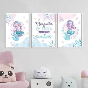 Kit 3 quadros menina - sereias sonhos 33x24cm Cor: moldura branca Informações do produto tire todas as suas dúvidas no descritivo abaixo: decoração para quarto, sala, cozinha, escritório, área gourmet e muito mais. Chega de paredes vazias medidas - cada peça tem 33x24cm a4 . Material do papel - papel fotográfico brilhante de altíssima resolução acabamento - todos os quadros são acompanhados de uma película de acetato para proteção da imagem. - os quadros são embalados de forma segura com plástico bolha com camada dupla de acordo com o tamanho dos quadros. Garantia - garantia de 3 meses. Meu quadro chegou. Como posso fixá-lo Você precisa apenas de um martelo e um prego, pois os quadros já vão acompanhados de penduradores. Esta é a forma mais indicada. Caso prefira, você pode utilizar uma fita dupla face neste caso, sugerimos de alta qualidade para evitar que descole e seu quadro caia . Como posso limpar meu quadro A limpeza é feita como um móvel comum da sua casa. Apenas um pano seco ou espanador são suficientes para tal