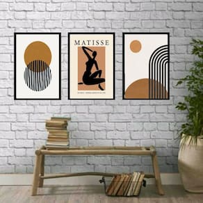 1. Os quadros já vêm com moldura? Sim, os quadros do Kit 3 Quadros Decoração Minimalista Marrom 24X18Cm - Vidro já vêm com moldura em madeira maciça na cor preta.