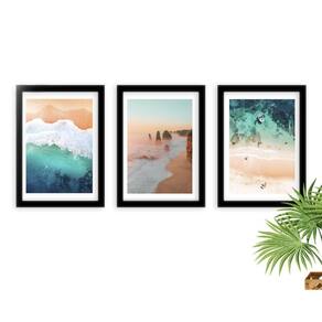Kit 3 Quadros Decorativos Com Moldura Branca Mar Paisagem Montanha Quadros decorativos fabricados com moldura de madeira de reflorestamento com acabamento laqueado, impressão a laser em papel couché 300g, fundo em madeira. As paredes ganham cor e vida com quadros e painéis decorativos. Escolha os modelos que faltam para deixar sua decoração ainda mais bonita. Na sala, no quarto ou em outros cômodos, as peças coloridas ou em preto e branco garantem mais estilo.