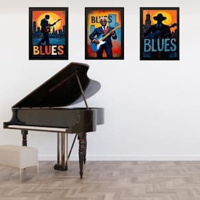 Kit 3 quadros músicos blues 45x34cm Cor: moldura preta Informações do produto tire todas as suas dúvidas no descritivo abaixo: decoração para quarto, sala, cozinha, escritório, área gourmet e muito mais. Chega de paredes vazias. Medidas - cada peça tem 45x34cm a3 . Material do papel - papel fotográfico brilhante de altíssima resolução acabamento - todos os quadros são acompanhados de uma película de acetato para proteção da imagem. - os quadros são embalados de forma segura com plástico bolha com camada dupla de acordo com o tamanho dos quadros. Garantia - garantia de 3 meses. Meu quadro chegou. Como posso fixá-lo Você precisa apenas de um martelo e um prego, pois os quadros já vão acompanhados de penduradores. Esta é a forma mais indicada. Caso prefira, você pode utilizar uma fita dupla face neste caso, sugerimos de alta qualidade para evitar que descole e seu quadro caia . Como posso limpar meu quadro A limpeza é feita como um móvel comum da sua casa. Apenas um pano seco ou espanador são suficientes para tal