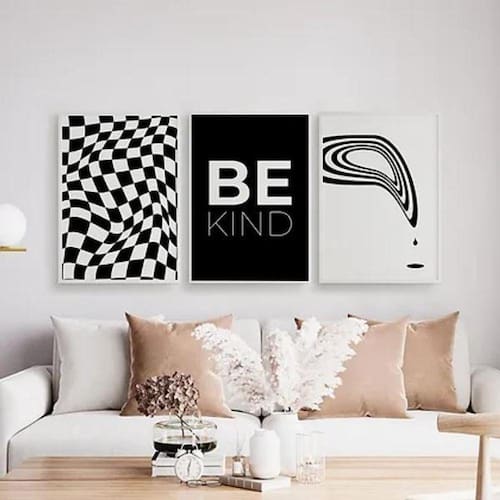 Kit 3 quadros optical art- be kind 45x34cm Moldura: madeira branca Informações do produto Decoração para quarto, sala, cozinha, escritório, área gourmet e muito mais. Chega de paredes vazias Medidas - cada peça tem 45x34cm a3 .Material do papel - papel fotográfico brilhante de altíssima resolução Acabamento - todos os quadros são acompanhados de uma película de acetato para proteção da imagem. - os quadros são embalados de forma segura com plástico bolha com camada dupla de acordo com o tamanho dos quadros. Garantia - garantia de 3 meses. Meu quadro chegou. Como posso fixá-lo Você precisa apenas de um martelo e um prego, pois os quadros já vão acompanhados de penduradores. Esta é a forma mais indicada. Caso prefira, você pode utilizar uma fita dupla face neste caso, sugerimos de alta qualidade para evitar que descole e seu quadro caia . Como posso limpar meu quadro A limpeza é feita como um móvel comum da sua casa. Apenas um pano seco ou espanador são suficientes para tal