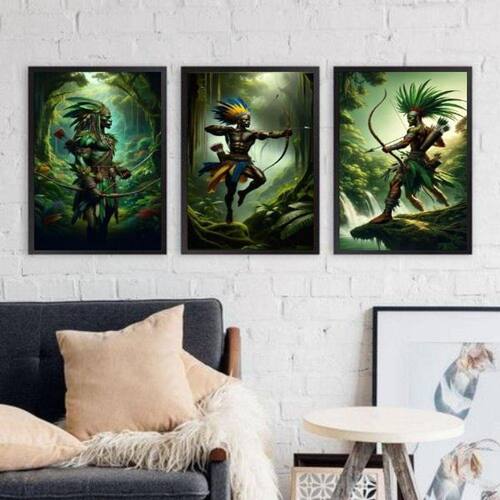 Kit 3 quadros oxossi guerreiro - candomblé 24x18cm - com vidro Moldura: madeira branca Informações do produto tire todas as suas dúvidas no descritivo abaixo: decoração para quarto, sala, cozinha, escritório, área gourmet e muito mais. Chega de paredes vazias medidas - cada peça tem 24x18cm a5 . Material do papel - papel fotográfico brilhante de altíssima resolução acabamento - todos os quadros são acompanhados de vidro para proteção da imagem. - moldura em madeira maciça na cor preta ou branca conforme produto escolhido e pendurador . - os quadros são embalados de forma segura com plástico bolha com camada dupla de acordo com o tamanho dos quadros. Garantia - garantia de 3 meses. Meu quadro chegou. Como posso fixá-lo Você precisa apenas de um martelo e um prego, pois os quadros já vão acompanhados de penduradores. Esta é a forma mais indicada. Como posso limpar meu quadro A limpeza é feita como um móvel comum da sua casa. Apenas um pano seco ou espanador são suficientes para tal