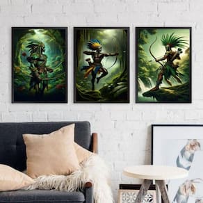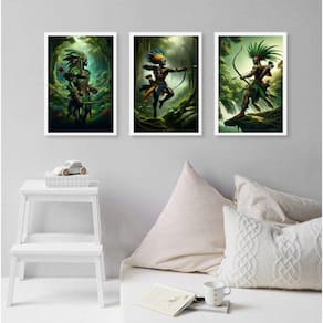 Kit 3 quadros oxossi guerreiro - candomblé 45x34cm Moldura: madeira branca Informações do produto tire todas as suas dúvidas no descritivo abaixo: decoração para quarto, sala, cozinha, escritório, área gourmet e muito mais. Chega de paredes vazias. Medidas - cada peça tem 45x34cm a3 . Material do papel - papel fotográfico brilhante de altíssima resolução acabamento - todos os quadros são acompanhados de uma película de acetato para proteção da imagem. - os quadros são embalados de forma segura com plástico bolha com camada dupla de acordo com o tamanho dos quadros. Garantia - garantia de 3 meses. Meu quadro chegou. Como posso fixá-lo Você precisa apenas de um martelo e um prego, pois os quadros já vão acompanhados de penduradores. Esta é a forma mais indicada. Caso prefira, você pode utilizar uma fita dupla face neste caso, sugerimos de alta qualidade para evitar que descole e seu quadro caia . Como posso limpar meu quadro A limpeza é feita como um móvel comum da sua casa. Apenas um pano seco ou espanador são suficientes para tal