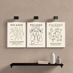 O Kit 3 Quadros Minimalistas Posters Picasso 24X18Cm - Vidro é perfeito para decorar diversos ambientes, como quarto, sala, cozinha, escritório, área gourmet e muito mais. Cada peça possui medidas de 24x18cm A5 e é feita em papel fotográfico brilhante de altíssima resolução.