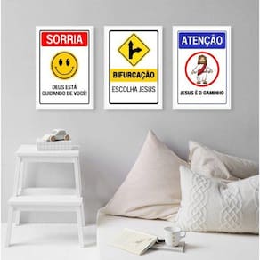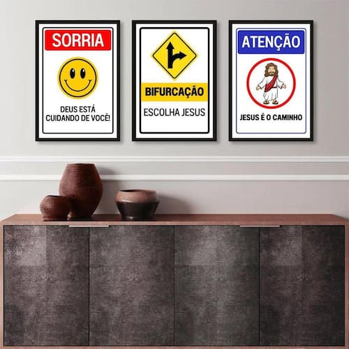 Kit 3 quadros placas cristãs - jesus 24x18cm