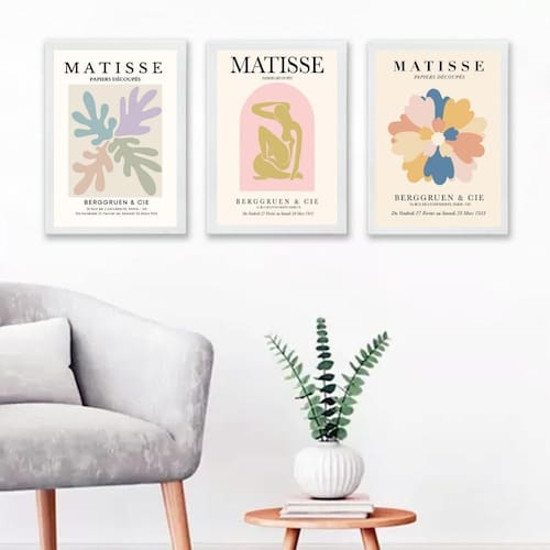 Kit 3 quadros posters matisse candy colors 33x24cm Moldura: madeira preta Informações do produto tire todas as suas dúvidas no descritivo abaixo: decoração para quarto, sala, cozinha, escritório, área gourmet e muito mais. Chega de paredes vazias medidas - cada peça tem 33x24cm a4 . Material do papel - papel fotográfico brilhante de altíssima resolução acabamento - todos os quadros são acompanhados de uma película de acetato para proteção da imagem. - os quadros são embalados de forma segura com plástico bolha com camada dupla de acordo com o tamanho dos quadros. - de 3 meses. Meu quadro chegou. Como posso fixá-lo Você precisa apenas de um martelo e um prego, pois os quadros já vão acompanhados de penduradores. Esta é a forma mais indicada. Caso prefira, você pode utilizar uma fita dupla face neste caso, sugerimos de alta qualidade para evitar que descole e seu quadro caia . Como posso limpar meu quadro A limpeza é feita como um móvel comum da sua casa. Apenas um pano seco ou espanador são suficientes para tal Marca: Não Informado Ean: 7892848316701