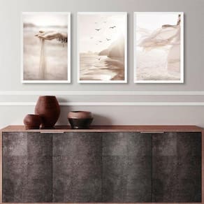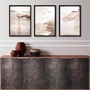 Kit 3 quadros praia bege e marrom- leveza 45x34cm - com vidro Moldura: madeira preta Informações do produto tire todas as suas dúvidas no descritivo abaixo: decoração para quarto, sala, cozinha, escritório, área gourmet e muito mais. Chega de paredes vazias medidas - cada peça tem 45x34cm a3 . Material do papel - papel fotográfico brilhante de altíssima resolução acabamento - todos os quadros são acompanhados de vidro para proteção da imagem. - moldura em madeira maciça na cor preta ou branca conforme produto escolhido e pendurador . - os quadros são embalados de forma segura com plástico bolha com camada dupla de acordo com o tamanho dos quadros. Garantia - garantia de 3 meses. Meu quadro chegou. Como posso fixá-lo Você precisa apenas de um martelo e um prego, pois os quadros já vão acompanhados de penduradores. Esta é a forma mais indicada. Como posso limpar meu quadro A limpeza é feita como um móvel comum da sua casa. Apenas um pano seco ou espanador são suficientes para tal Ean: 7893236188733